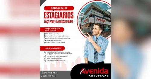 A Auto Peças Avenida, referência no segmento automotivo em Toledo, está com vagas abertas para estágio, proporcionando uma excelente oportunidade de aprendizado e desenvolvimento profissional.