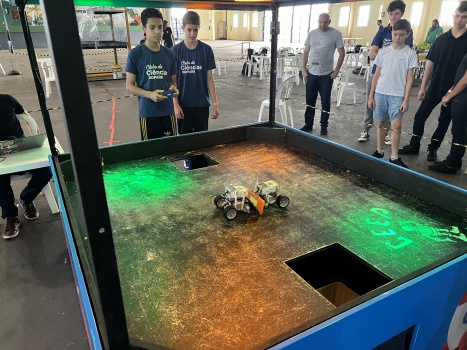 Crianças, jovens e adultos puderam acompanhar de perto, no sábado e domingo, dias 28 e 29 de outubro no PIG DATA 2023, competições de robótica com batalha de robôs.