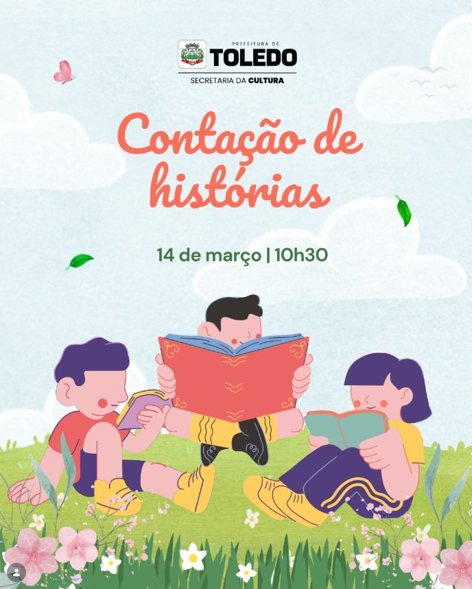 A Biblioteca Pública Municipal de Toledo recebe neste sábado, dia 14 de março, uma atividade especial voltada ao público infantil e às famílias: a contação de histórias, promovida pela Secretaria da Cultura. O evento está marcado para às 10h30 e será realizado no espaço da biblioteca, localizada no Centro Cultural Oscar Silva, na Avenida Tiradentes, Nº 1.165, na região central da cidade.