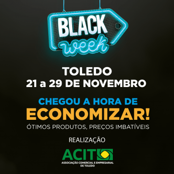 Os consumidores e clientes do comércio de Toledo terão a oportunidade de adquirir produtos de qualidade com condições especiais. A campanha Black Week, que acontece de 21 a 29 de novembro, contempla empresas identificadas, associadas e integrantes ao Fundo Direto de Promoções da ACIT.