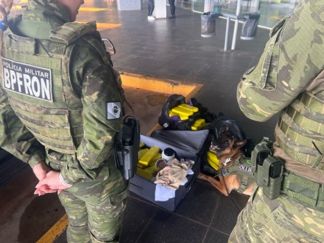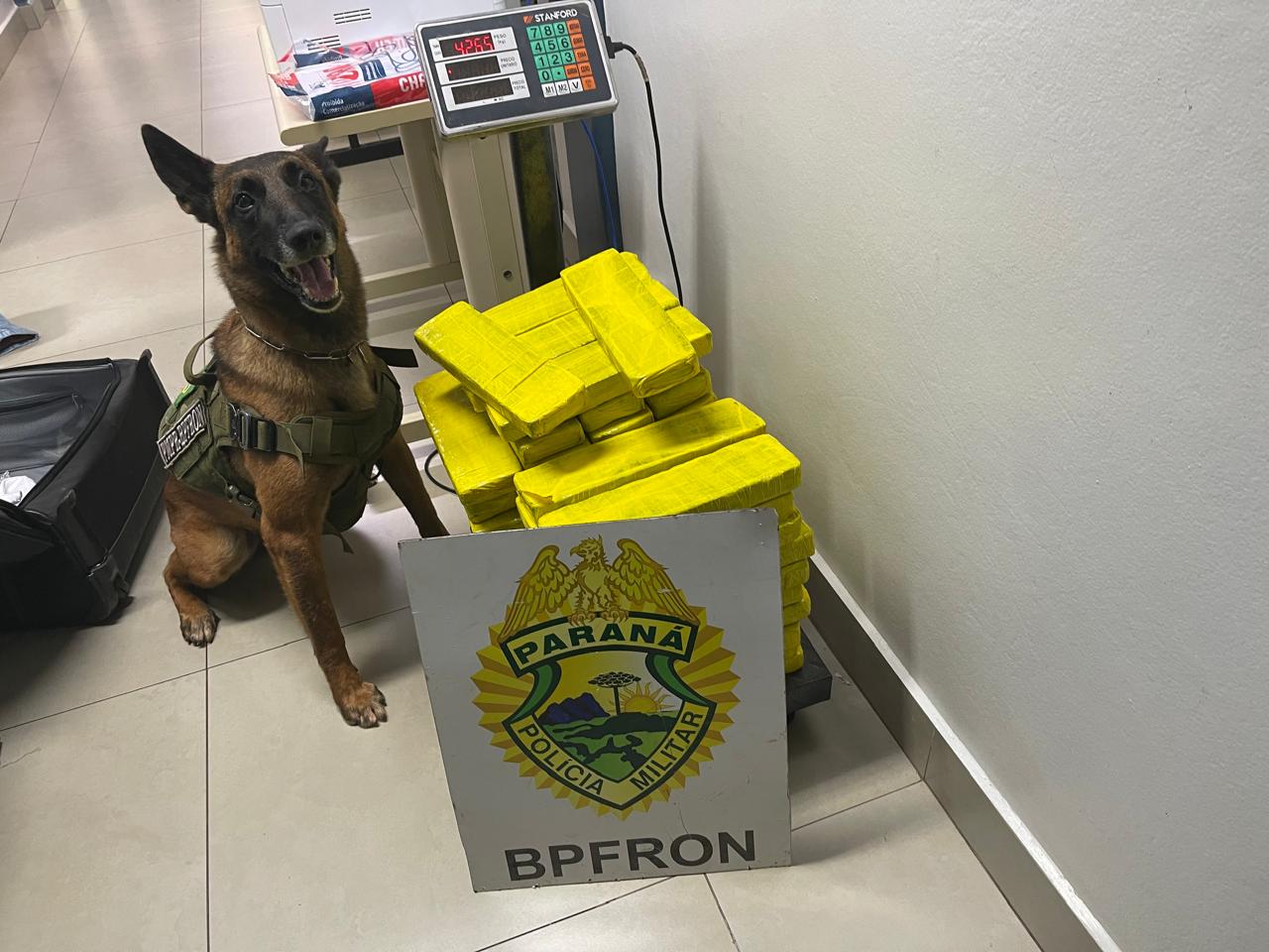 A droga estava na bagagem de um casal, de 22 e 29 anos. Eles informaram que pegaram a droga em Guaíra e deixariam em Curitiba.