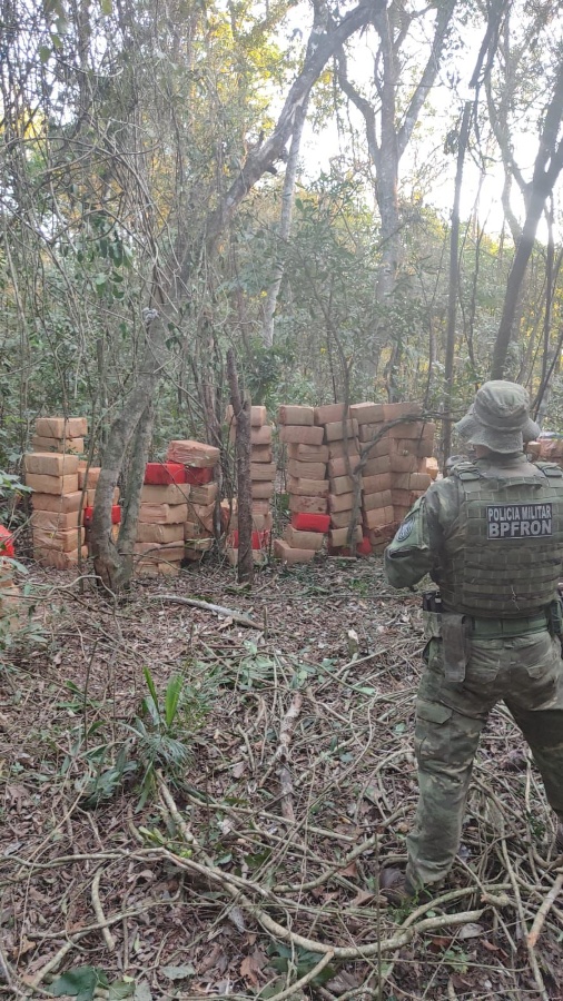 Com o auxílio do cão farejador Logan, os policiais encontraram diversos fardos da droga escondidos em meio à mata densa e de difícil acesso. Após a pesagem, foi constatado que a apreensão totalizou 6.385 kg de maconha.
