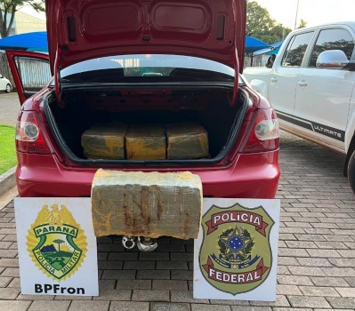 BPFron e Polícia Federal apreendem carro carregado com entorpecentes em Guaíra