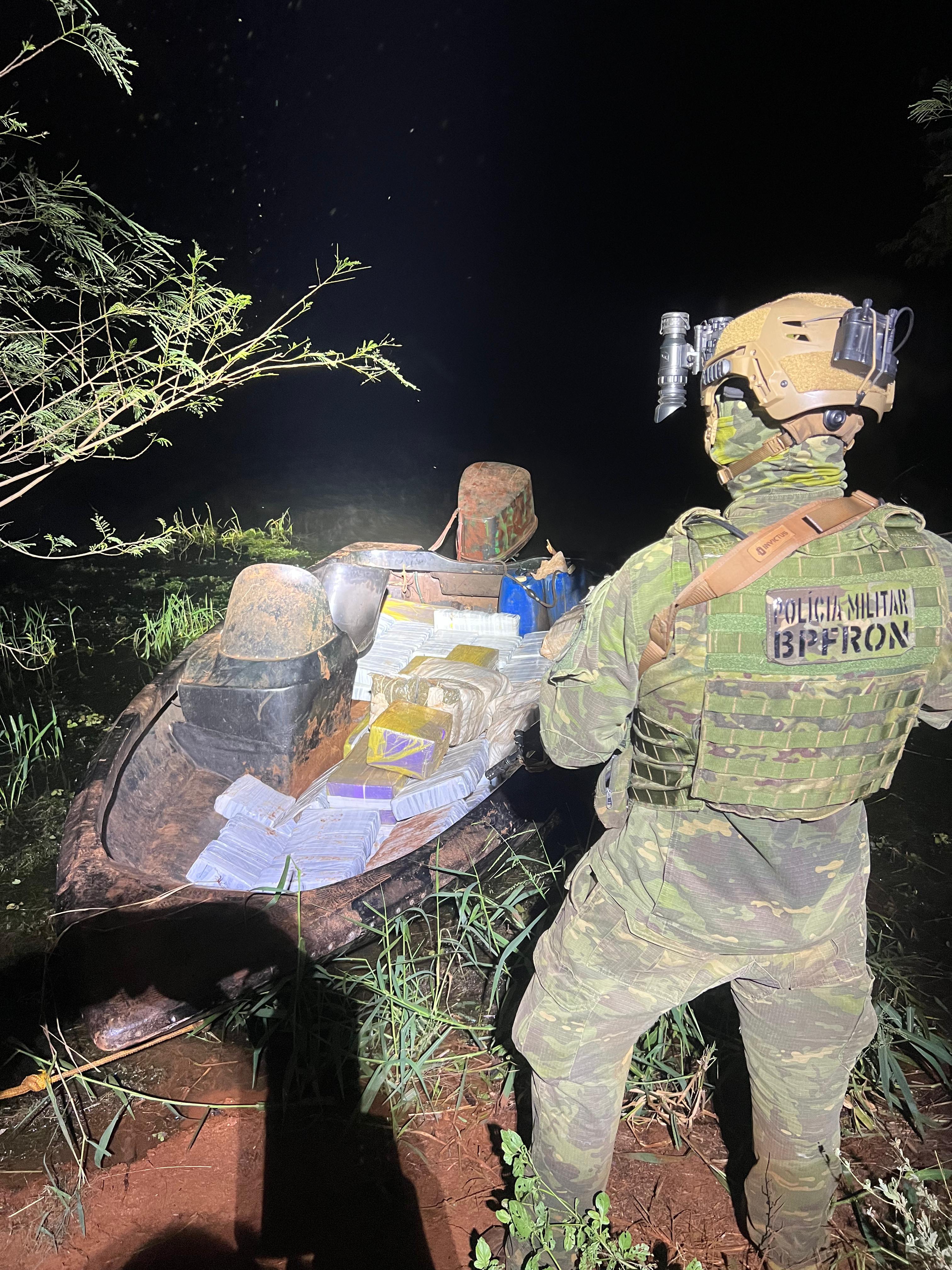 Durante uma ação realizada no último domingo, dia 01º de junho, a Polícia Militar do Paraná (PMPR), por meio do Batalhão de Polícia de Fronteira (BPFron), apreendeu uma grande quantidade de drogas em Santa Helena-PR, no âmbito da Operação Protetor. O flagrante aconteceu durante patrulhamento no Lago de Itaipu, nas proximidades do distrito de Sub-Sede, quando uma equipe policial localizou uma embarcação transportando entorpecentes.