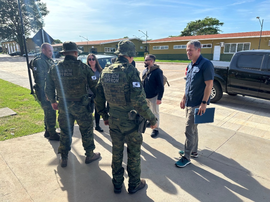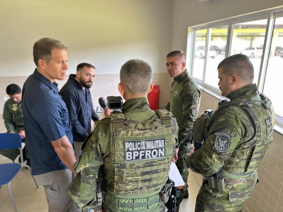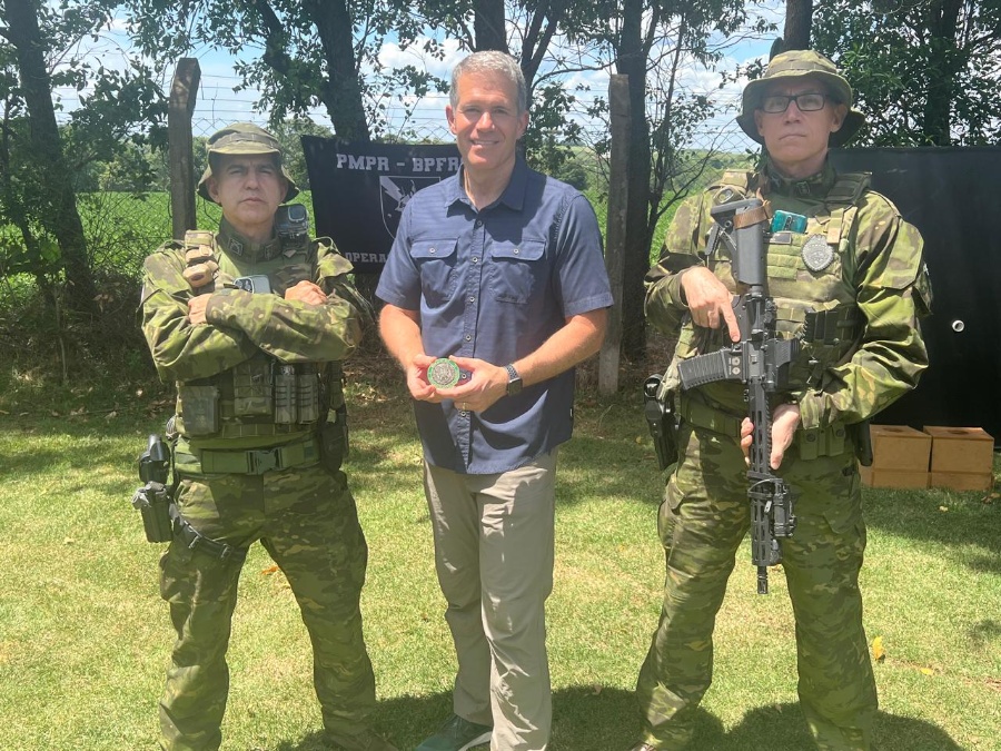 Nesta terça-feira (26), a Polícia Militar do Paraná (PMPR), por meio do Batalhão de Polícia de Fronteira (BPFron), recebeu a visita do novo Cônsul dos Estados Unidos no Brasil, Richard Glenn (empossado há quatro meses) acompanhado de sua comitiva, para conhecer a Unidade e as forças de segurança que atuam na Fronteira do Paraná.