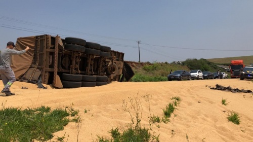 Conforme as informações obtidas pela equipe de reportagem do Toledo News, uma carreta tombou próximo à Sede Alvorada e a carga ficou espalhada na pista, impedindo o trânsito de veículos no sentido à Cascavel.