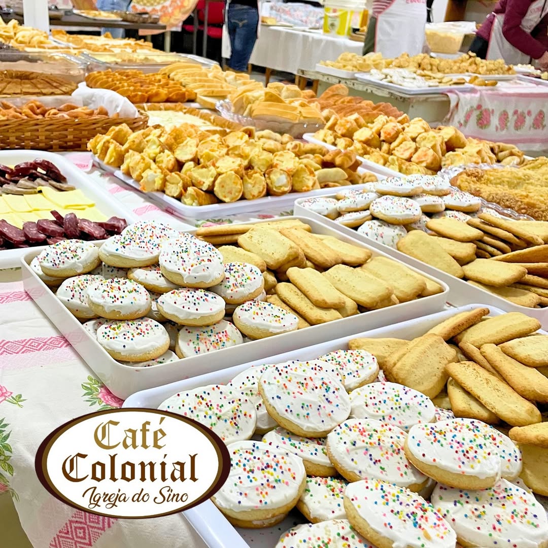 O tradicional Café Colonial da Igreja do Sino será realizado no dia 24 de maio, das 15h00 às 22h00, no salão da igreja, em Toledo. Com cardápio variado, o evento oferecerá pães artesanais, cucas, bolos, tortas, salgados e outras especialidades típicas, servidas à vontade em um ambiente que preserva a cultura e a hospitalidade da comunidade.