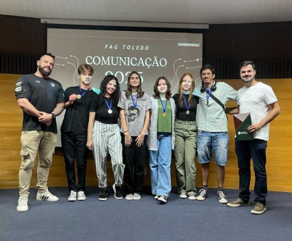 A recepção dos calouros dos cursos de Design Gráfico e Publicidade e Propaganda da FAG Toledo rendeu uma semana intensa de atividades, interações e desafios, compartilhados entre os novos alunos, veteranos e professores dos colegiados. Após se apresentarem aos demais colegas, na segunda-feira (17), os calouros se separaram em grupos para participarem do Desafio Hackathon. "Foram três dias muito produtivos, onde pudemos sentir as expectativas dos calouros, que se envolveram bastante nas atividades, trouxeram ideias e repertório aos desafios apresentados", explica a coordenadora do Núcleo de Comunicação da FAG Toledo, Talita Ferraz. Com o problema de comunicação em mãos, os grupos se organizaram para encontrar soluções, que foram apresentadas aos jurados convidados. "Trouxemos o Murilo Almeia e o Paulo Hipólito para avaliar os trabalhos com a experiência e a visão de profissionais com bastante vivência na área. Eles deram os feedbacks e situaram os novos alunos dentro dos temas apresentados", complementa Talita. O Grupo Tekoha foi o trabalho vencedor.