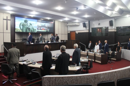 Após o Pequeno Expediente, os vereadores interromperam a Sessão Ordinária para estrear duas placas – ambas emolduradas na entrada do Plenário Edílio Ferreira, ao lado do Mural de Presidentes do Legislativo.