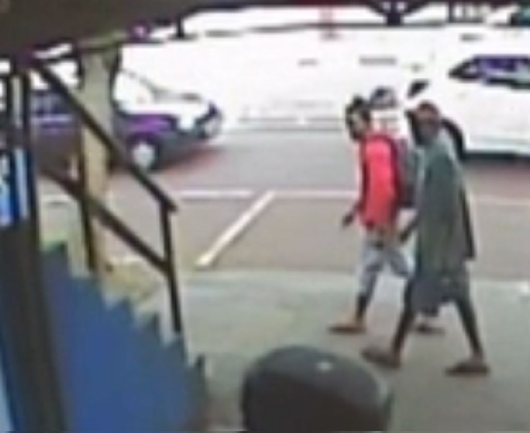 As imagens mostram dois homens passando em frente ao estabelecimento e observando a moto, uma Honda CG 125 Fan preta, ano 2011, de placa AUB3D08. Pouco depois, um deles retorna sozinho, se aproxima do veículo e o leva.