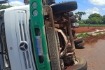 Caminhão carregado com concreto tomba na Avenida Egydio Geronymo Munaretto