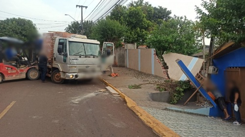 Caminhão desgovernado atinge muro de residência no César Park, em Toledo