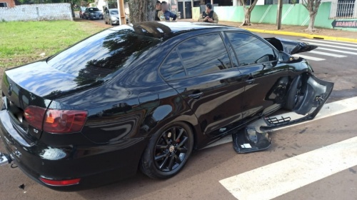 Caminhão e Jetta colidem em cruzamento na Vila Paulista, em Toledo