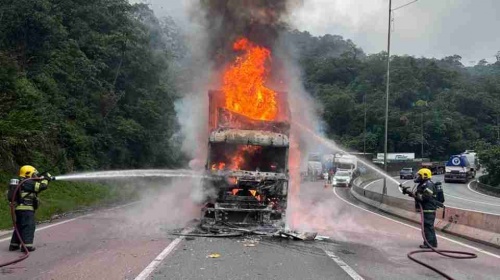 Segundo o Corpo de Bombeiros, o motorista, relatou que estava descendo a serra quando ouviu um estouro, em seguida o caminhão desligou, momento em que percebeu fumaça na parte inferior da cabine.