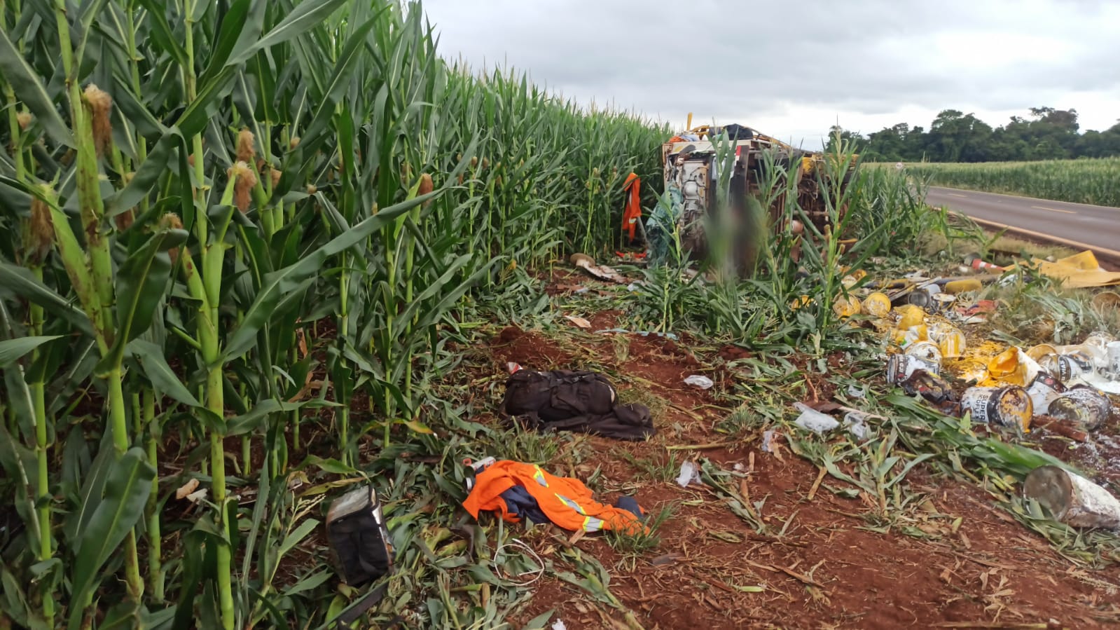 Profissionais da Polícia Rodoviária Estadual (PRE) também compareceram ao local para registrar a ocorrência e controlar o trânsito. Algumas latas de tinta utilizadas pela empresa nas pinturas das vias se espalharam pela na beira da rodovia.