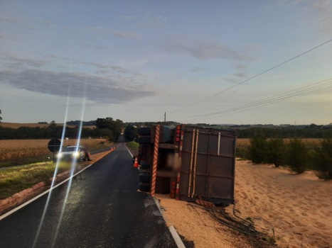 Caminhão tomba na PR-495 entre Marechal Cândido Rondon e Entre Rios do Oeste