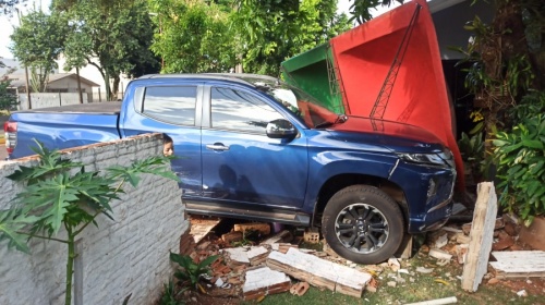 Uma caminhonete L200 Triton derrubou um ponto de ônibus e invadiu o terreno de uma residência por volta das 16h00 desta quinta-feira (03), em Toledo. O acidente também envolveu um Renault Duster e foi registrado no cruzamento das ruas Borges de Medeiros e Caetano Severino Perin, no Jardim Gisela.