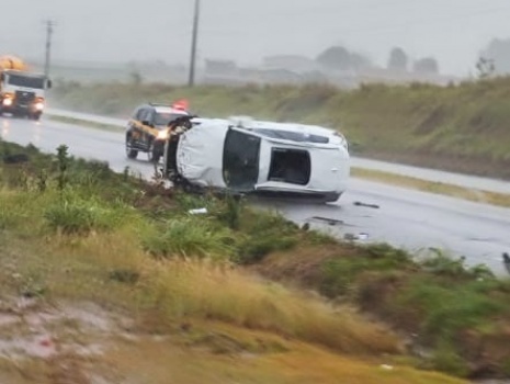 Um veículo capotou na manhã da última sexta-feira, 11, na rodovia BR-163, no trecho entre Toledo e Marechal Cândido Rondon-PR.