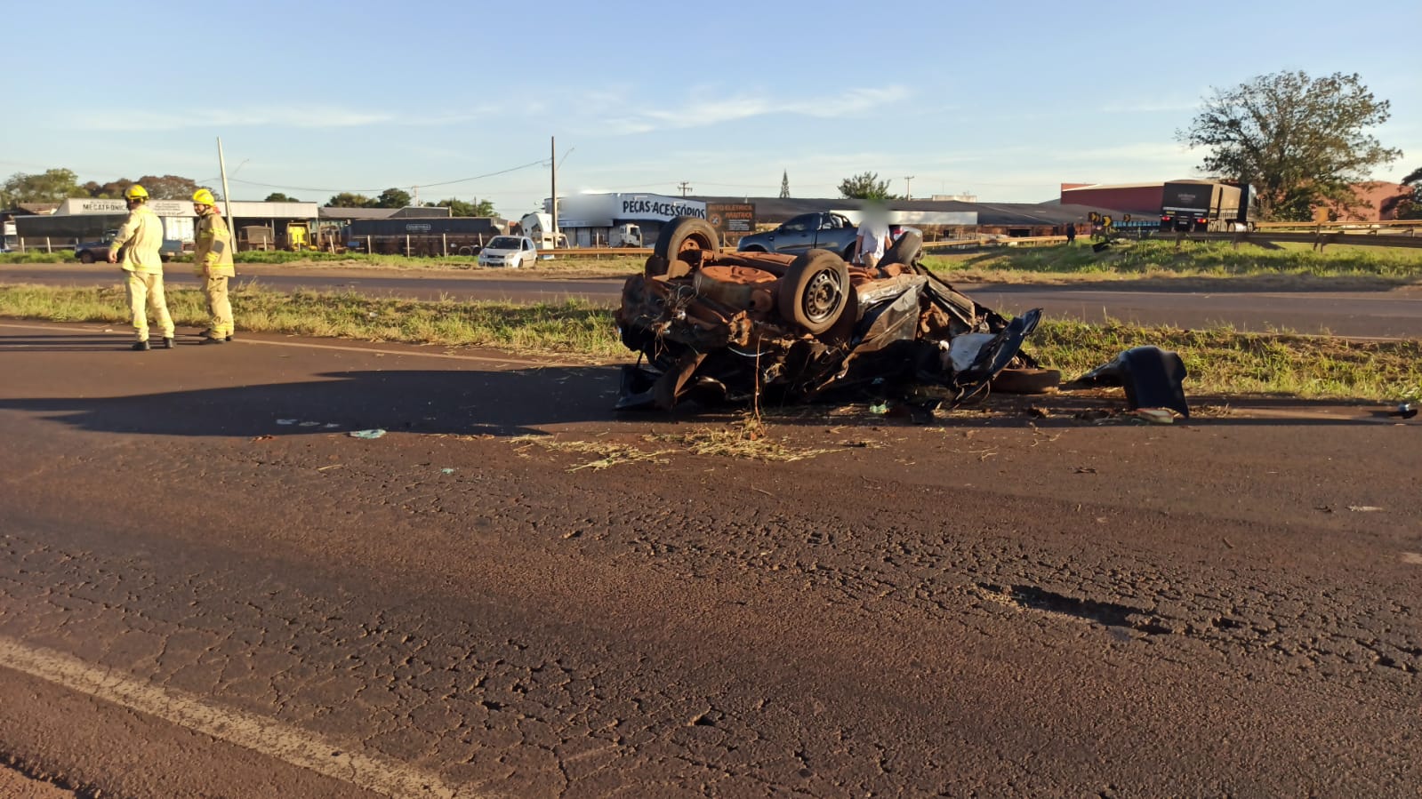 A Polícia Rodoviária Federal (PRF) atendeu a ocorrência e controlou o trânsito no local. O veículo ficou completamente destrído.