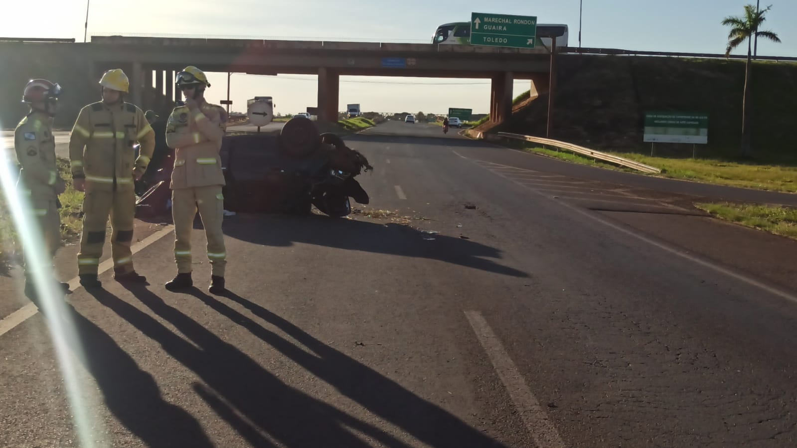 O acidente aconteceu por volta das 15h50, próximo ao viaduto da Avenida Parigot de Souza, quando o condutor de um Volkswagen Voyage perdeu o controle da direção e capotou, parando na pista contrária.