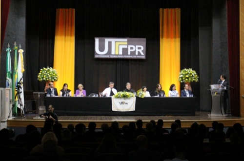 No palco, o ex-reitor Carlos Eduardo Cantarelli, após ser homenageado, agradeceu e refletiu sobre os momentos de mudança pelos quais passou a UTFPR. “Eu me lembro que quando saiu a transformação [para Universidade] nós caímos de felicidade. Mas paramos de ser a 1ª [melhor colocada] instituição em educação profissional do Brasil para ser a última Universidade [por ser mais nova]”.