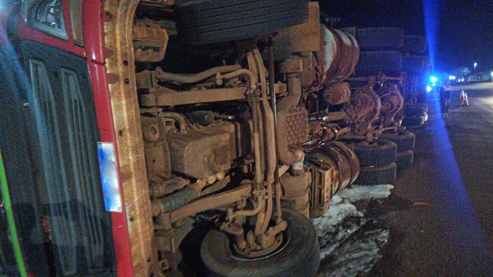 Segundo o motorista, ele seguia pela rodovia PR-317 com sentido a Toledo quando, ao entrar na rotatória para acessar a rodovia PR-182, a carga de 32 toneladas pendeu para o lado direito e o veículo tombou. Apesar do susto, o condutor não se feriu.