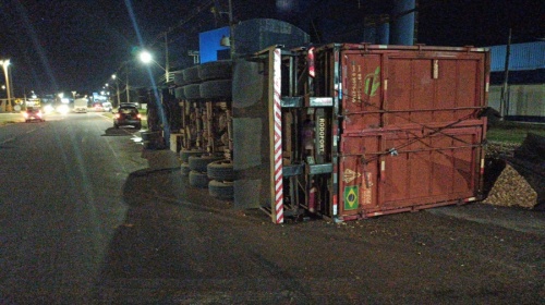 Uma carreta carregada com cavaco tombou na noite desta segunda-feira, dia 01º de julho, na rotatória do trevo que liga as rodovias PR-182 e PR-317, na entrada de Toledo. O acidente não deixou feridos, mas a pista ficou oleosa e precisou ser lavada por equipes do Corpo de Bombeiros.