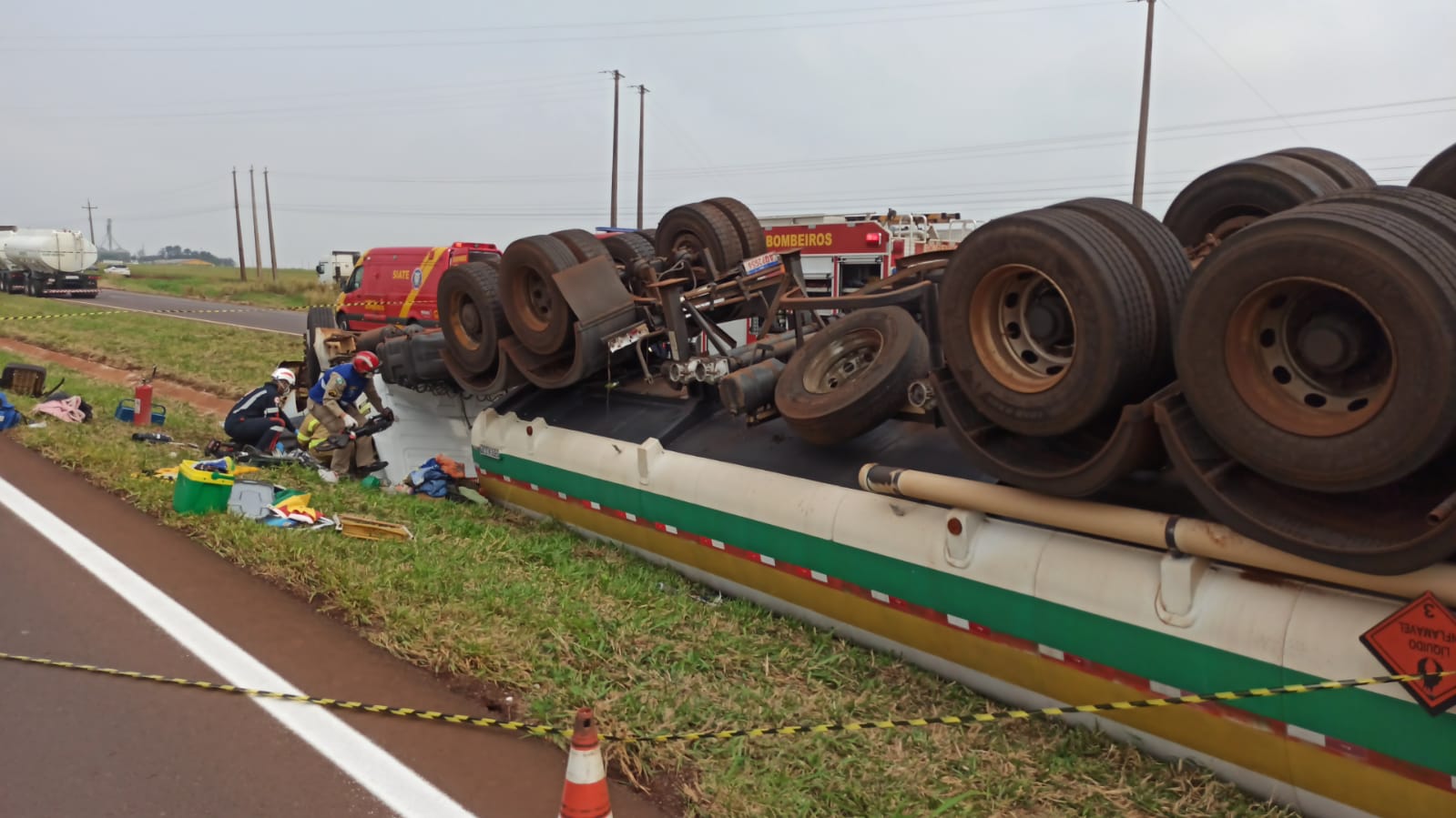 Carreta carregada com etanol capota na BR-163 em Sede Alvorada