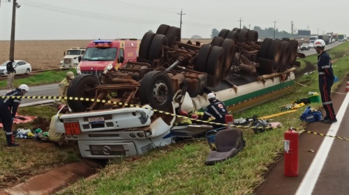 O condutor de uma carreta carregada com etanol ficou preso às ferragens em um grave acidente de trânsito na rodovia BR-163, no distrito de Sede Alvorada, em cascavel-PR, na tarde deste sábado (14). Equipes do Serviço Integrado de Atendimento ao Trauma em Emergência (Siate) de Cascavel e do Serviço de Atendimento Móvel de Urgência (Samu) foram mobilizadas para prestar atendimento ao motorista.