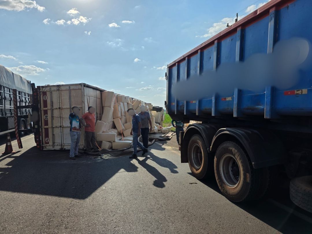 A carreta transportava uma carga de maravalha, que ficou espalhada após o tombamento do veículo. A PRF esteve no local para controlar o tráfego e orientar os motoristas que passavam pela região, já que o acidente provocou a interdição parcial da pista até a retirada do veículo e a limpeza da via.