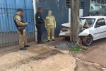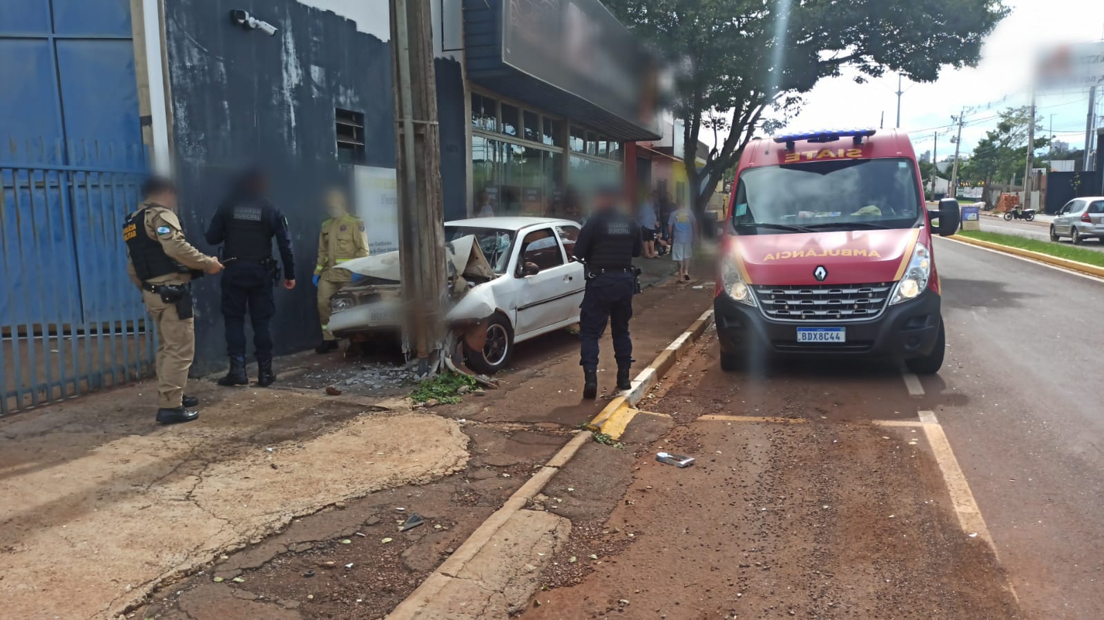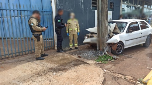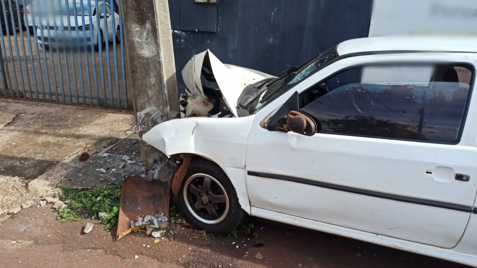 Carro bate em poste após colisão e deixa dois feridos em Toledo