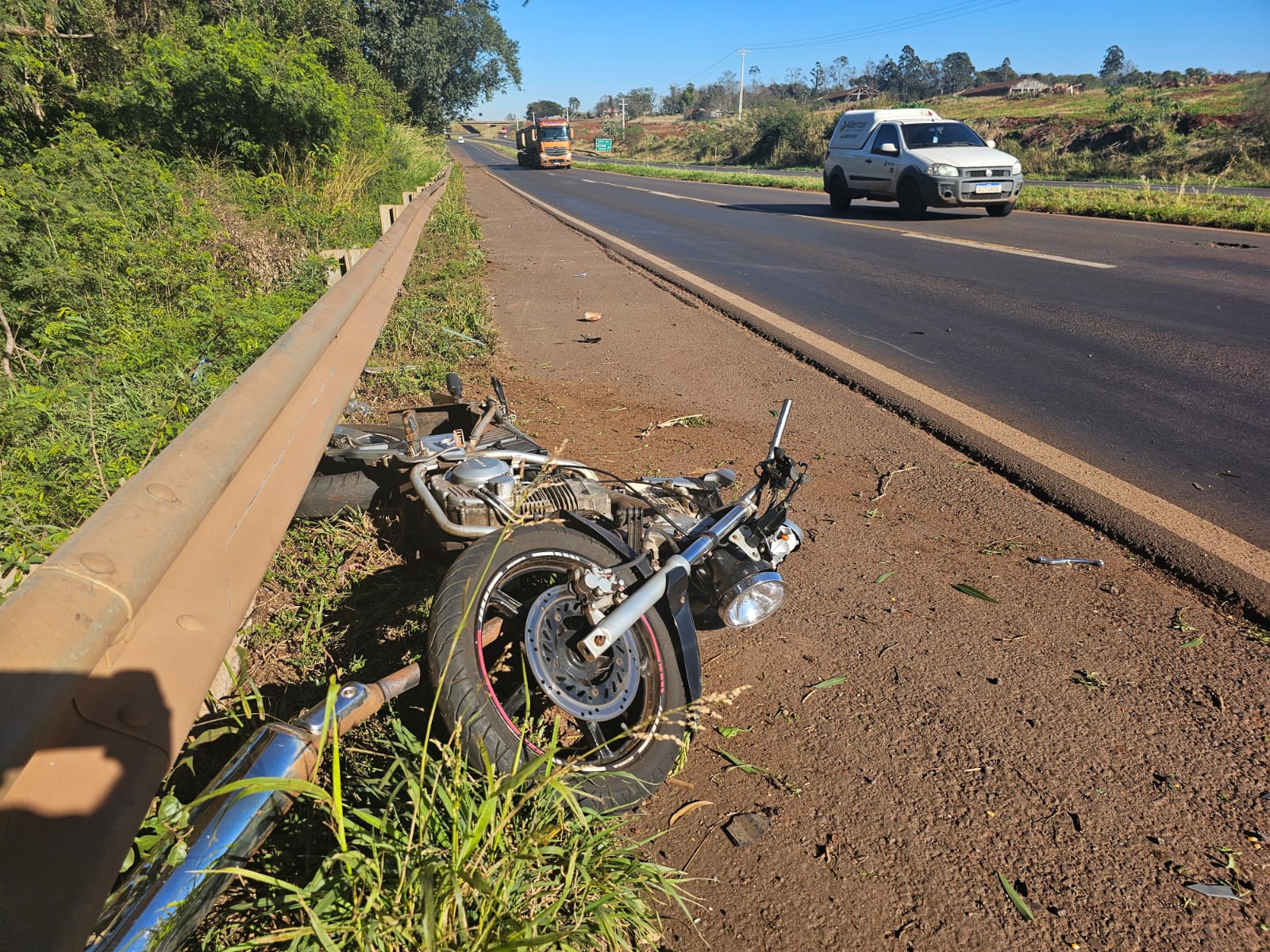 Um grave acidente de trânsito foi registrado na manhã desta quinta-feira (14), na rodovia BR-163, em Toledo, proximidades do Parque do Povo Luiz Cláudio Hoffmann. O acidente envolveu um carro e uma motocicleta.