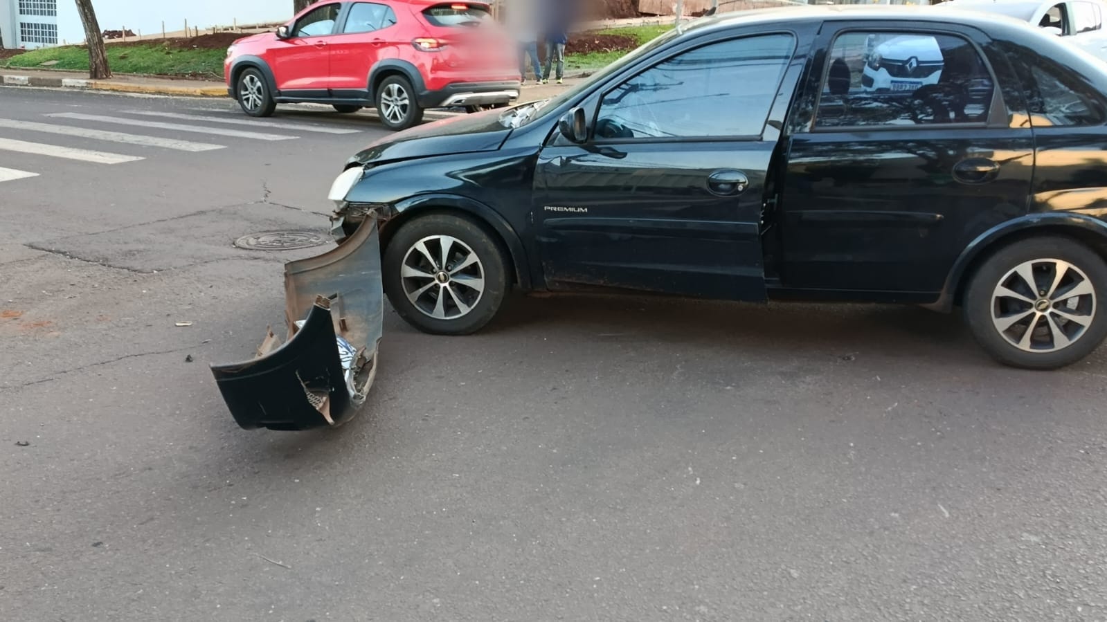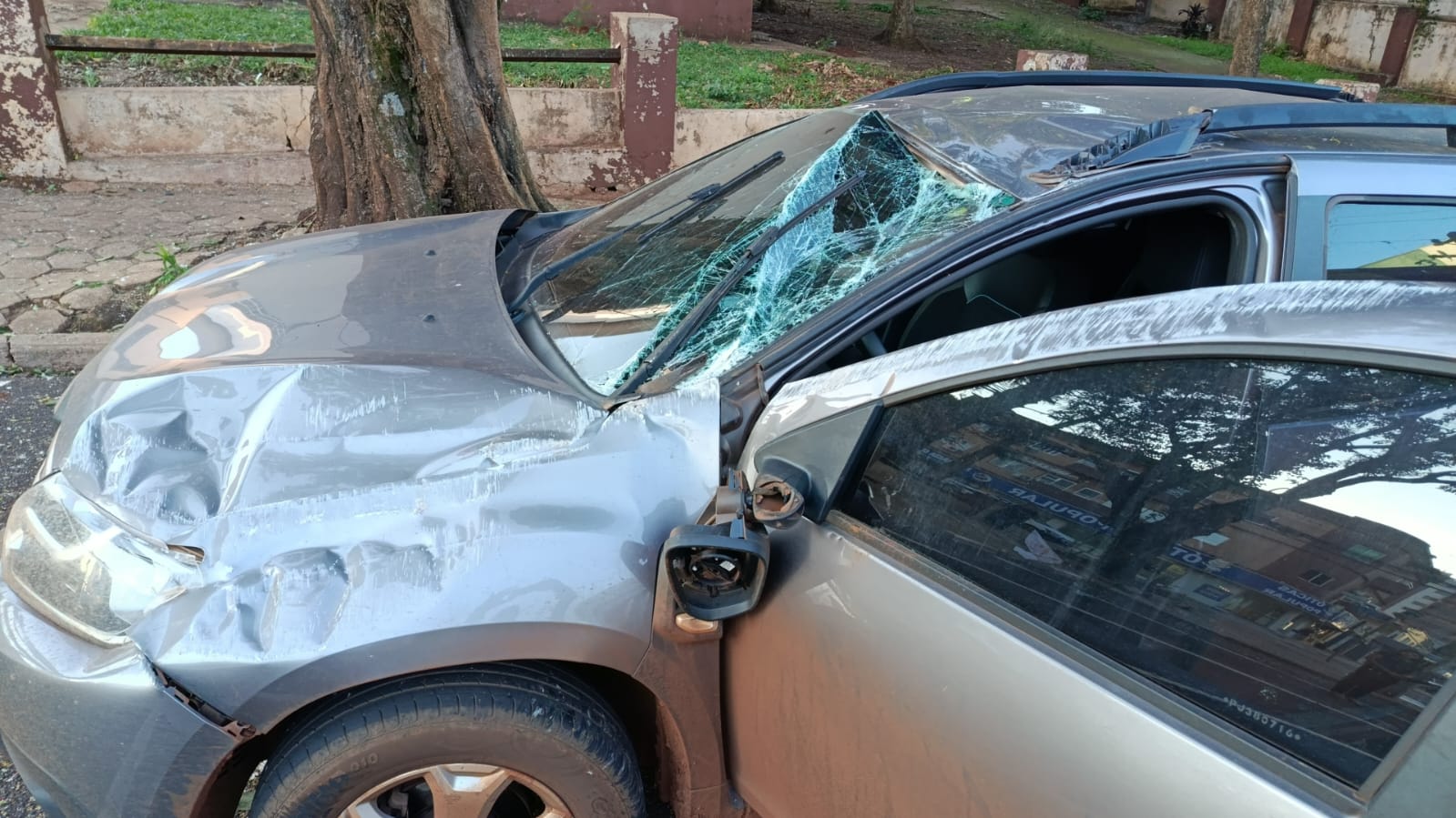 Durante a manobra desgovernada, o Duster ainda colidiu com a traseira de um Fiat Palio, que estava estacionado no acostamento.