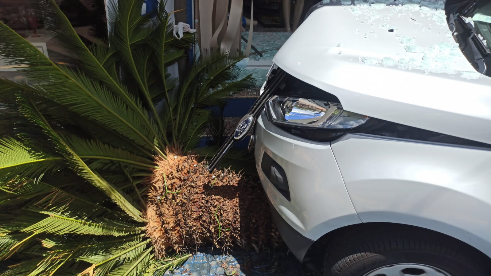 O carro subiu na calçada, atingiu uma planta, que foi derrubada, e colidiu contra a vitrine de uma loja de roupas, quebrando o vidro e danificando alguns manequins. Não houveram feridos. O impacto causou danos médios à parte frontal do automóvel.