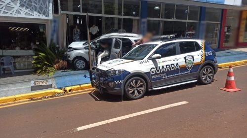 Carro colide contra vitrine de comércio no Centro de Toledo
