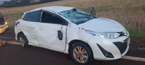 Carro de Toledo se envolve em acidente com capotamento na PR-239