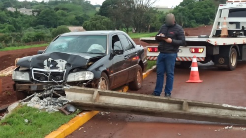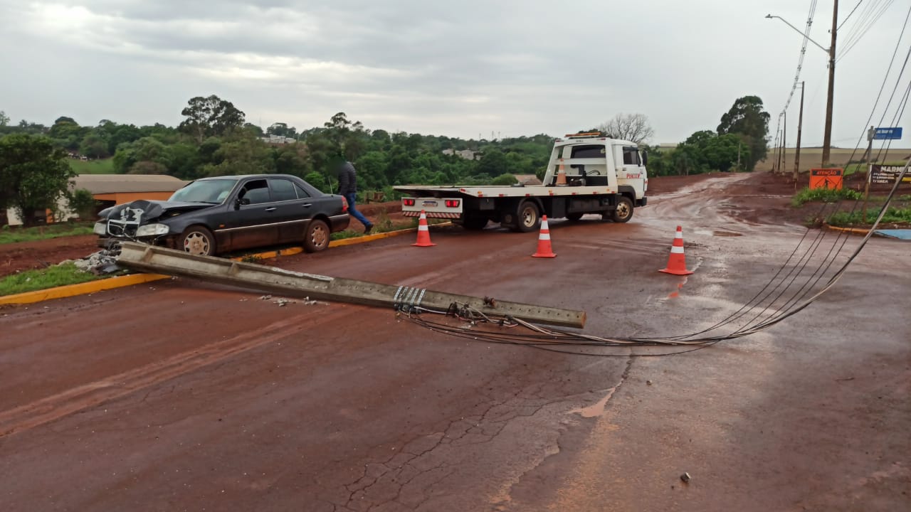 Conforme apurado pela equipe de reportagem do Toledo News, o veículo Mercedes-Benz, ocupado por dois homens, colidiu contra o poste após o motorista perder o controle da direção ao passar pela lama na pista.