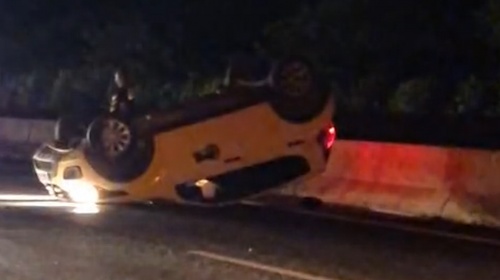 O Fiat/Mobi foi localizado após se envolver em um acidente com capotamento na rodovia BR-163, proximidades de Lindoeste.