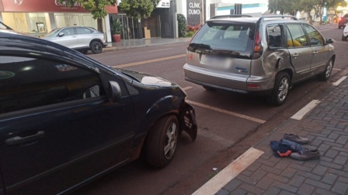 Um veículo Fiat Marea, furtado na tarde desta segunda-feira, 26, em Toledo, causou um acidente envolvendo quatro carros na Rua Santos Dumont, cruzamento com a Rua Nossa Senhora do Rocio, na área central da cidade.