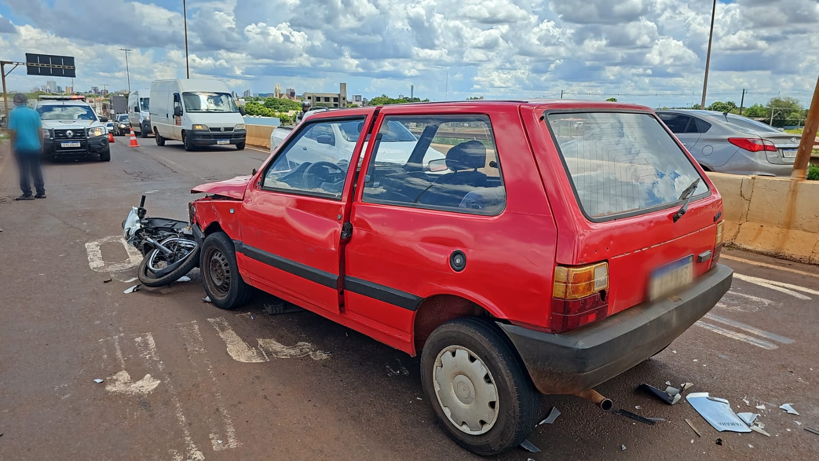 Já em cima do viaduto, ele quase colidiu com uma caminhonete e, na sequência bateu de frente com uma Honda Biz, conduzida pela jovem.