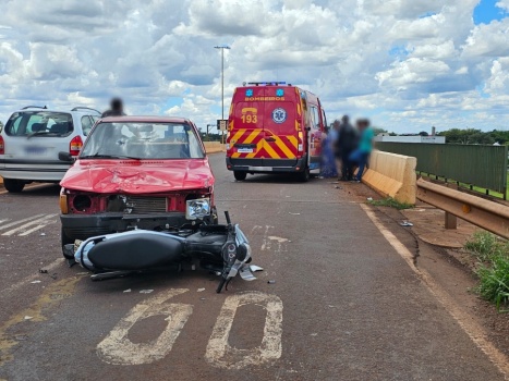 Um motorista na contramão provocou um acidente no viaduto da Avenida Parigot de Souza, sobre a rodovia BR-163, em Toledo, por volta das 13h00 desta quarta-feira (12). Uma jovem ficou ferida.