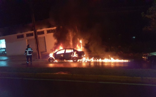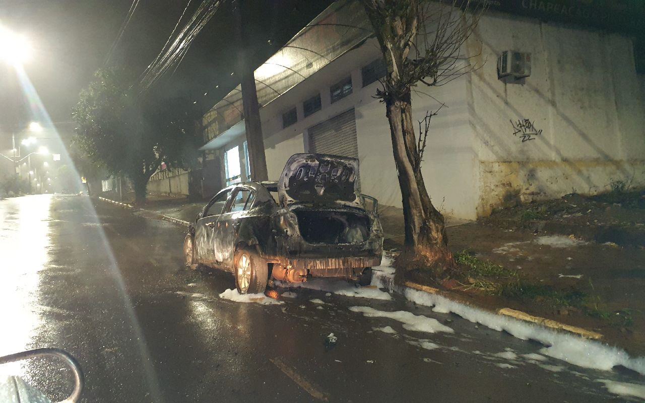 Carro pega fogo na Avenida Maripá durante a madrugada