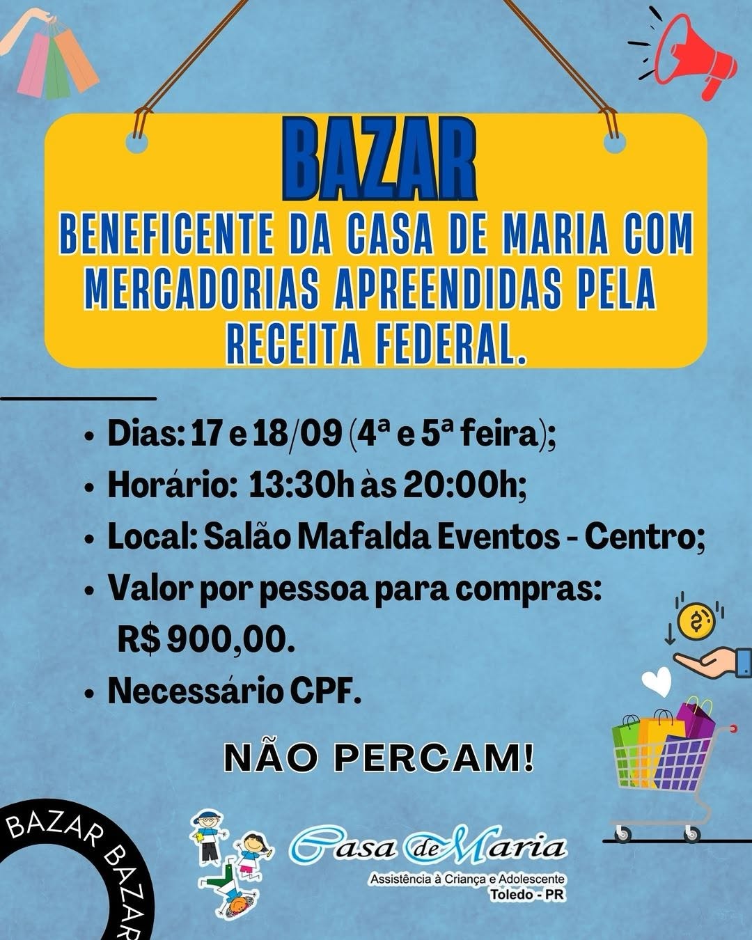 Casa de Maria promove bazar solidário em Toledo com mercadorias apreendidas da Receita Federal