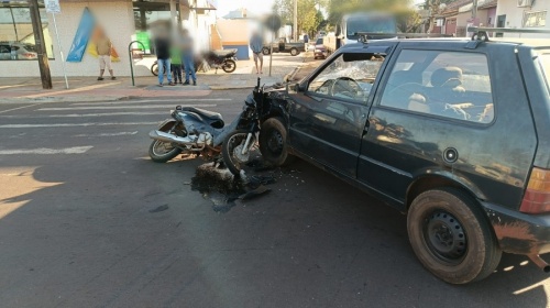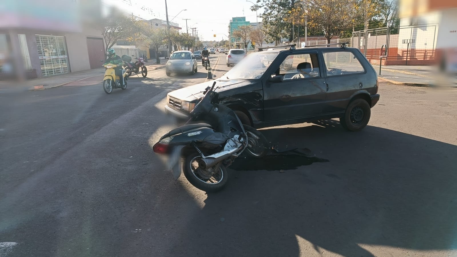 Casal de jovens fica ferido em colisão entre carro e moto no Jardim São Francisco