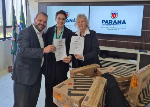 Nesta terça-feira (20), Toledo recebeu 10 notebooks novos da Secretaria do Desenvolvimento Social e Família do Paraná (Sedef), destinados aos Centros da Juventude (Cju). Os equipamentos foram recebidos pelas secretárias: Sheila Delava (Desenvolvimento Humano e Social) e Simone Ferrari (Assistência Social), diretamente das mãos do secretário da Sedef, Rogério Carboni, em Curitiba.