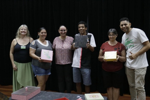 As peças apresentadas pelos participantes foram levadas por eles para casa, porém três alunos foram contemplados, por meio de sorteio, com mais uma caixa em MDF. Depois da exposição, os presentes ao encerramento puderam apreciar um delicioso coffee break. “Em casa faço crochê, geralmente sozinha. Aqui, além de aprender uma arte que eu não dominava, foi uma experiência gratificante fazer isso na companhia de outras pessoas”, pontua a moradora do Centro, Gladis Uebel Ehmke. “Faço trabalhos com outros tipos de artesanato, mas este eu ainda não tinha feito e gostei da experiência, tanto que penso em incluí-la como mais uma fonte de renda”, relata a moradora do Pinheirinho, Daiane de Melo. “Amei a oficina, conheci coisas novas, fiz amizades e ano que vem quero participar de mais atividades”, pontua a moradora do Santa Clara IV, Laureci Maria Finkler.