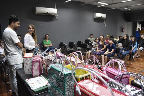 Em sua segunda turma (a primeira formou-se em junho), a oficina de Confecção de Bolsas com Garrafas Pet foi ministrada, em 10 horas-aula, pela assistente em desenvolvimento social da Secretaria da Cultura, Cleonice Dumke. Na ocasião, as bolsas produzidas durante o curso ficaram em exposição e foram levadas para casa pelas suas respectivas autoras logo após o evento.