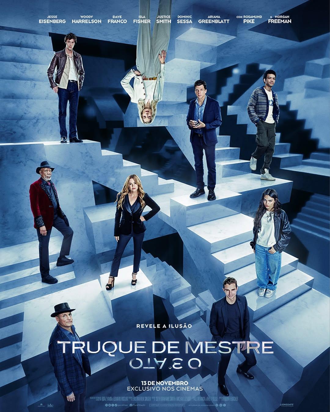 A principal estreia da semana, ‘Truque de Mestre: O 3º Ato’, reúne novamente os ilusionistas conhecidos como “Os Quatro Cavaleiros”: J. Daniel Atlas, interpretado por Jesse Eisenberg; Merritt McKinney, vivido por Woody Harrelson; Dylan Rhodes, papel de Mark Ruffalo; e Lula, interpretada por Lizzy Caplan. Nesta nova aventura, o grupo retorna para enfrentar um desafio que envolve a joia mais valiosa do mundo, em uma trama que promete surpreender o público com reviravoltas, truques elaborados e uma nova geração de ilusionistas que se une ao quarteto. Na história, os Cavaleiros se veem diante de uma empresa corrupta que movimenta dinheiro para criminosos internacionais, e juntos precisam derrubar a poderosa família que comanda o esquema.