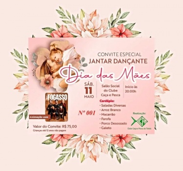 Celebre o Dia das Mães em grande estilo no Clube Caça e Pesca de Toledo. Garanta já o seu lugar e prepare-se para uma noite inesquecível!