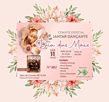 Celebre o Dia das Mães em grande estilo no Clube Caça e Pesca de Toledo. Garanta já o seu lugar e prepare-se para uma noite inesquecível!
